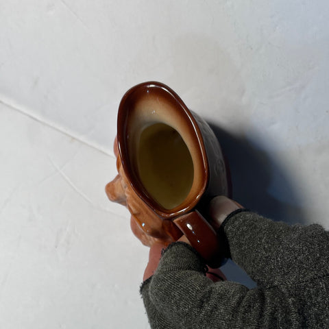 Cute toby mug with weathered old man face and a toothy grin. Only standing 3" tall, perfect to fit in any display. Very good condition. Glossy finish. Clean. Imprinted on back: John Barleycorn Old lad. See pictures as we consider them part of the description.